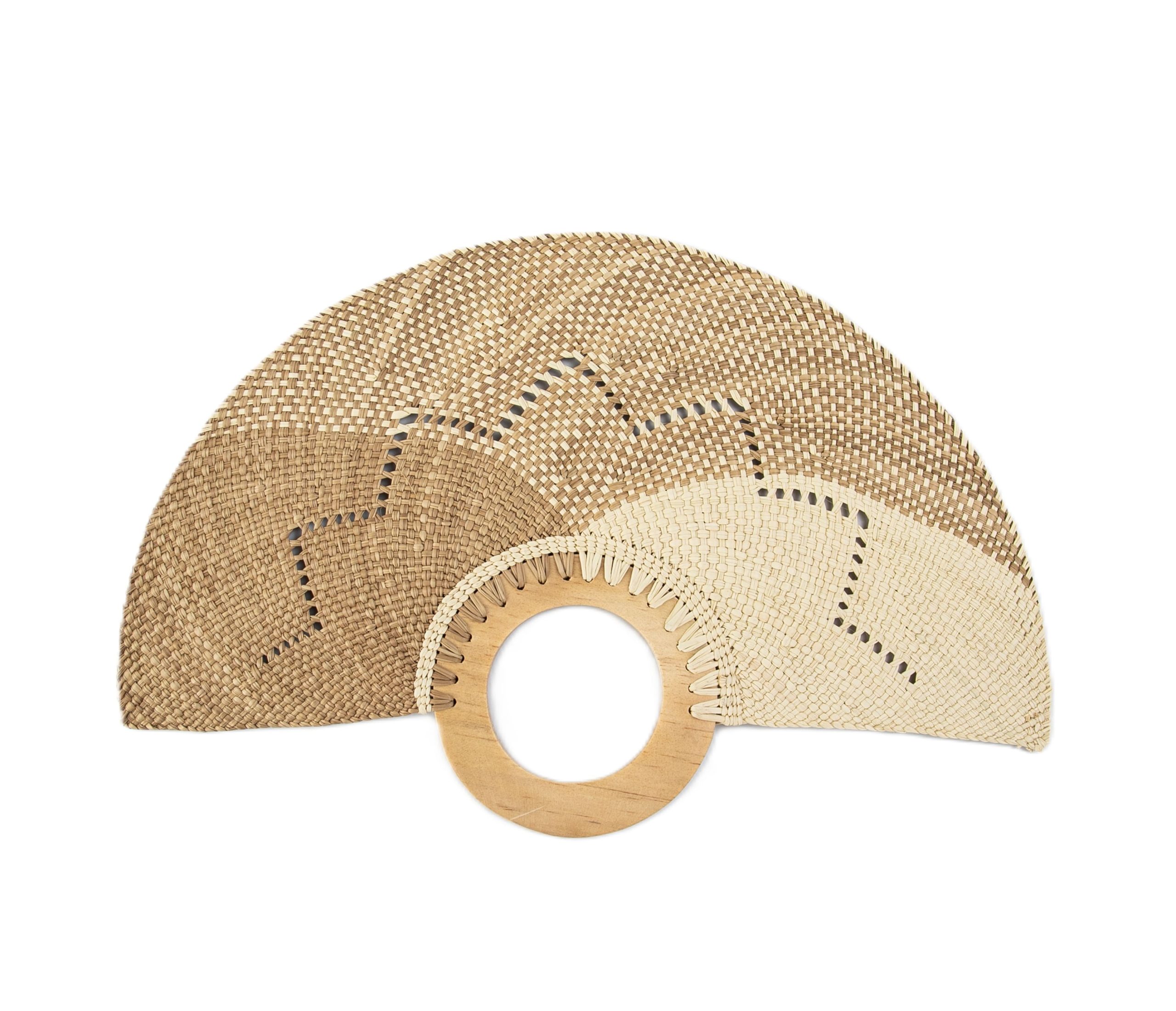 El tejido en iraca es uno de los saberes más preciados del sur de Colombia. En esta pieza, de tradición se encuentra con el diseño moderno, transformando una técnica milenaria en un objeto de lujo cotidiano. Cada abanico representa horas de ripiado, tinturado y tejido manual, donde la suavidad de la palma se une a la solidez del pino para crear un equilibrio perfecto entre naturaleza y maestría artesanal.