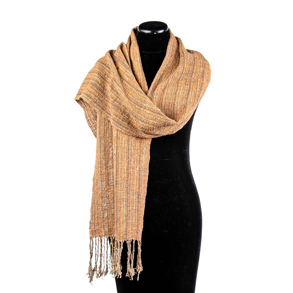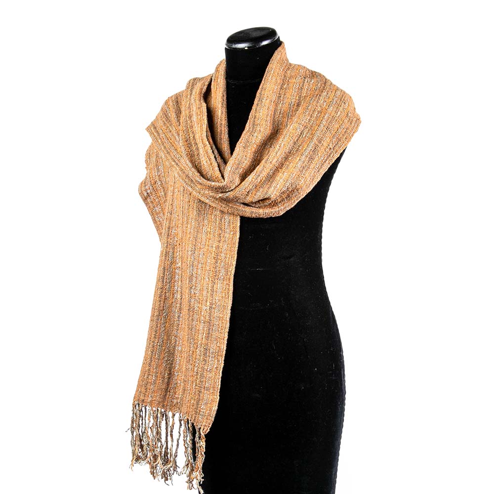 Bufanda tejida en telar horizontal elaborada en algodón orgánico por artesanos de Charalá Santander.