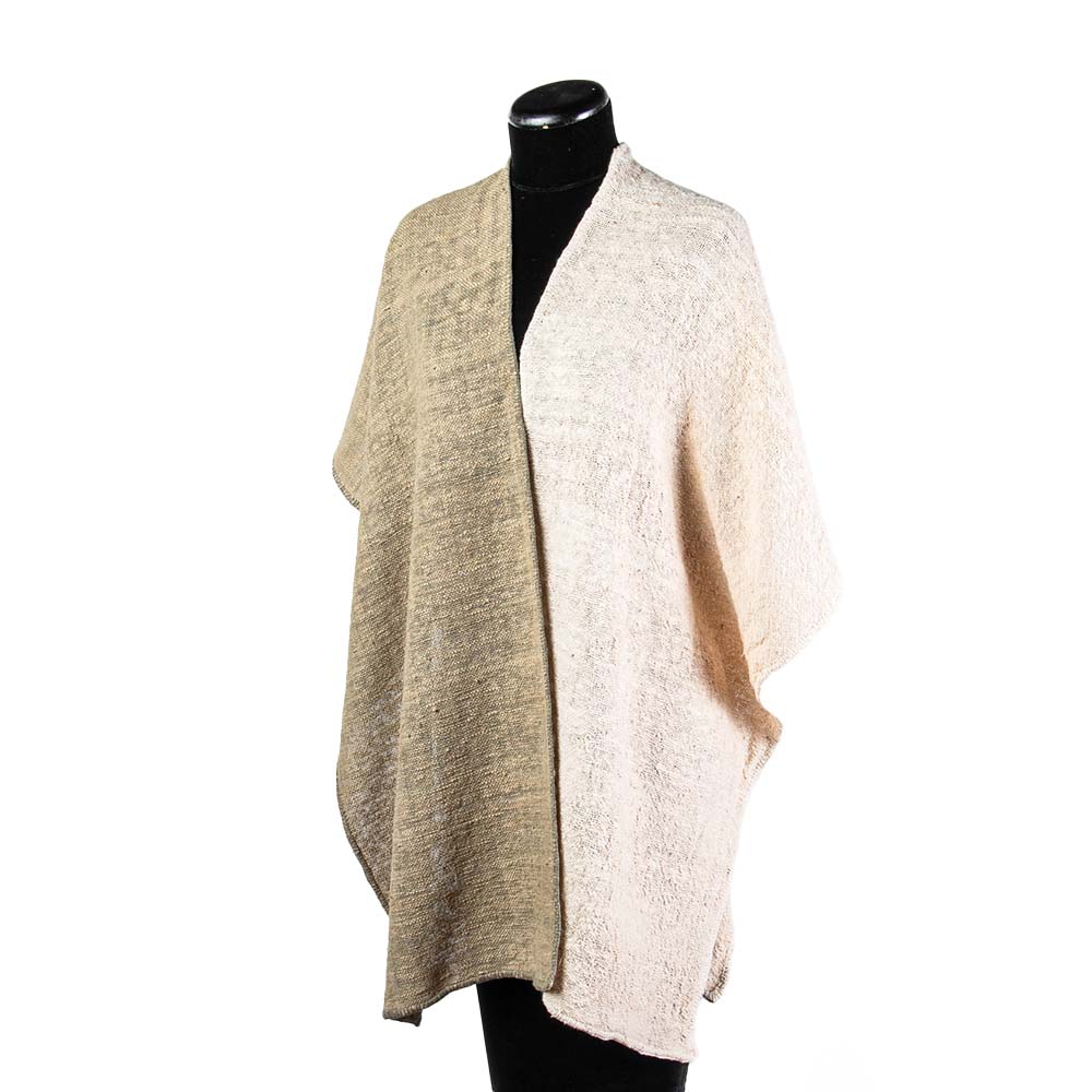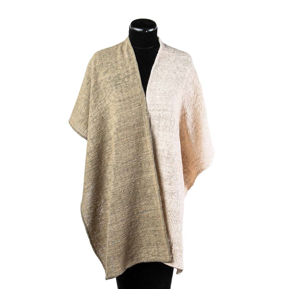 Ruana tejida en telar horizontal elaborada en algodón orgánico por artesanos de Charalá Santander.
